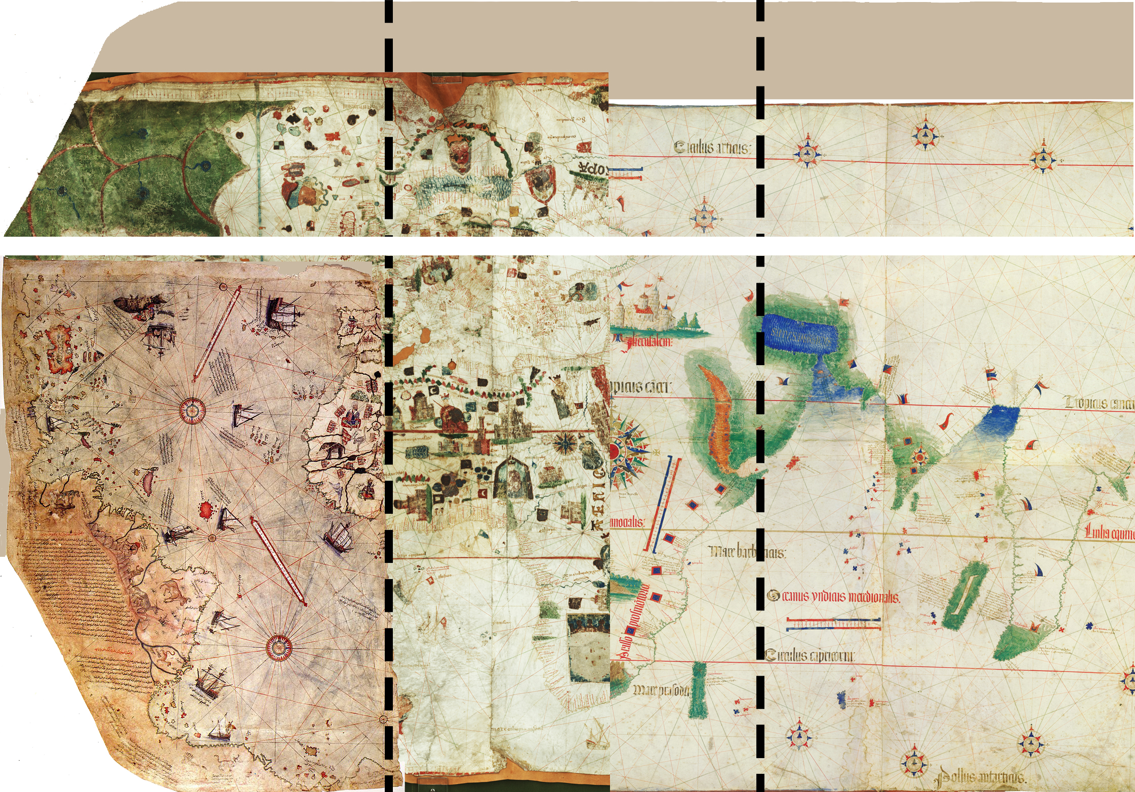 Şekil 2 1500 yılında sığır derisine çizilen Mapa de Juan de la Cosa 'daki daralan kısımlar. Kaynak: Museo Naval de Madrid